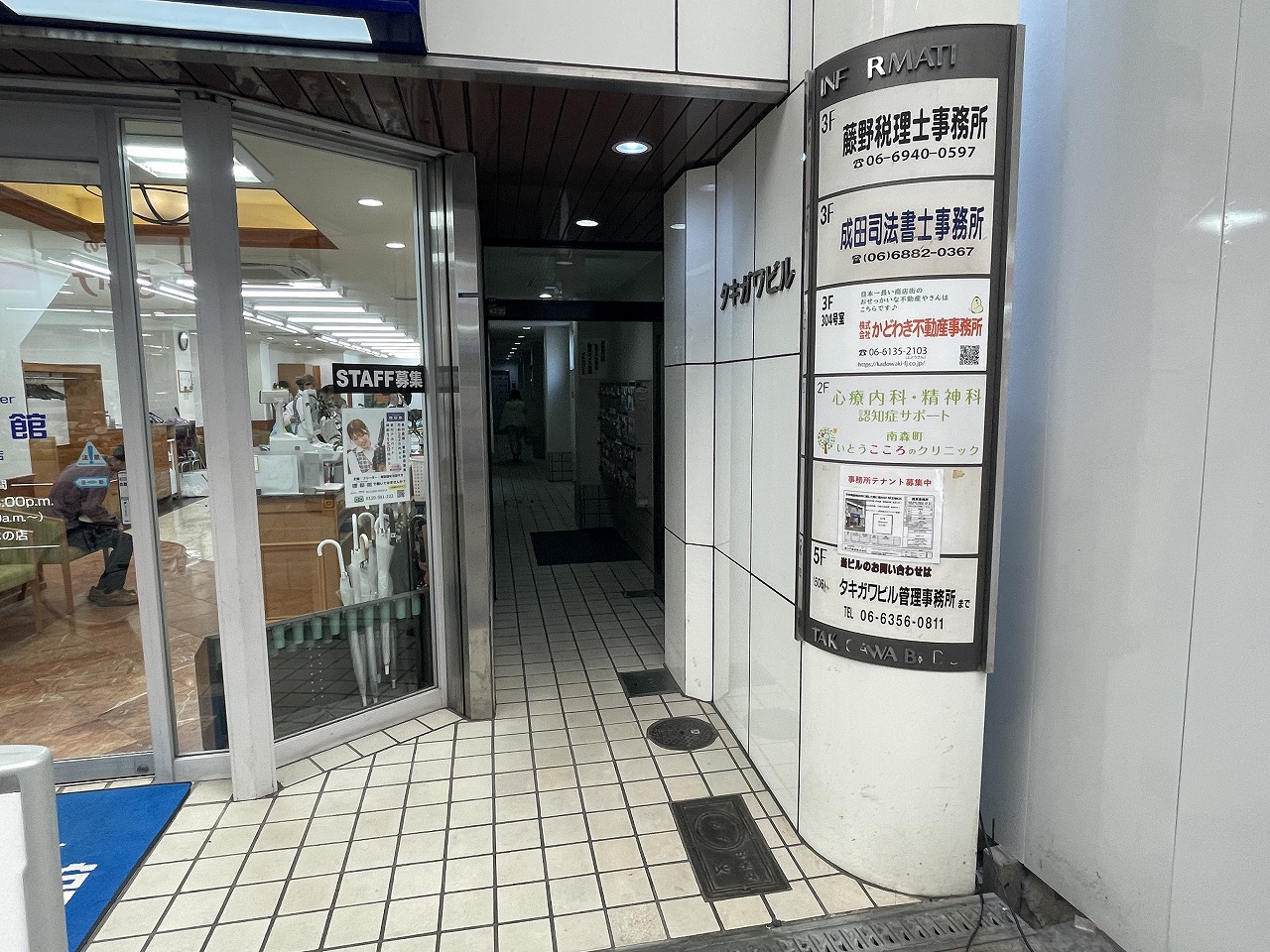 - 天神橋商店街に面して雨に濡れない好立地ビル