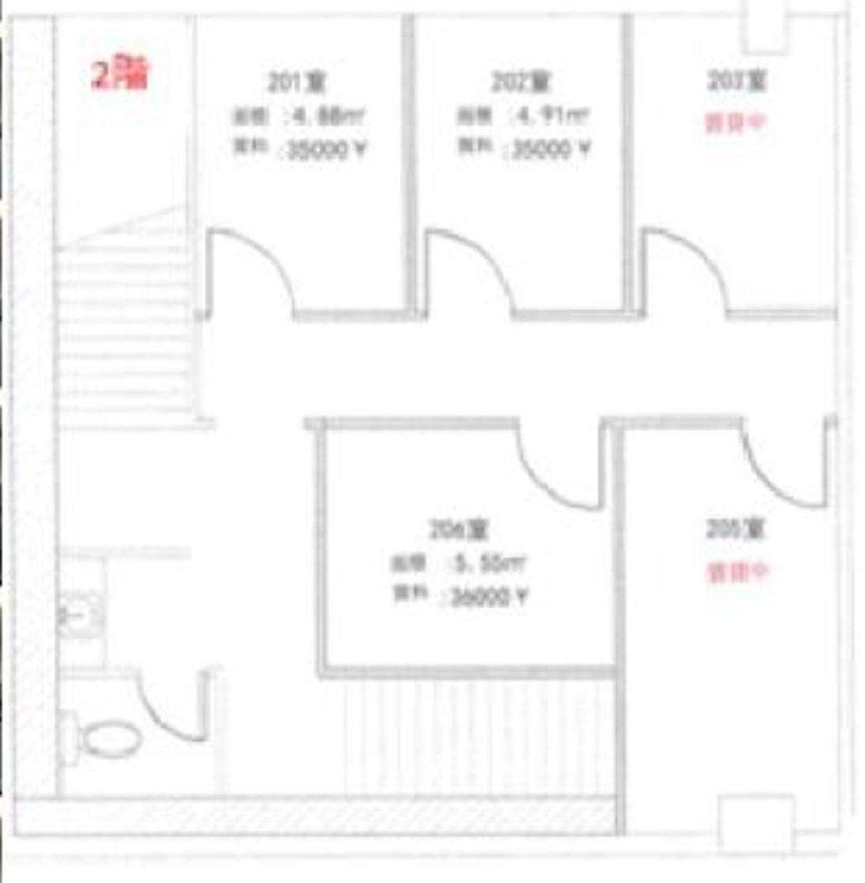 | 202 | 1.48坪 | 35,000円 | 2,000円 | 25,000円 | 1ヵ月 | 即日 |