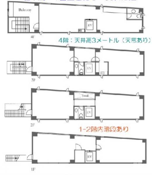 - 外階段と4階部分の大きなバルコニーが特徴的なデザイナーズオフィス