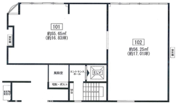 101(55.65㎡)、102(56.25㎡)の一括貸し相談可