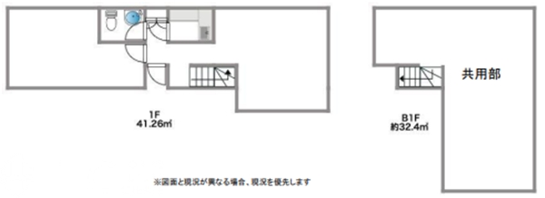 - 地下室付きのメゾネットタイプ(1階 12.48坪+地下 9.8坪)