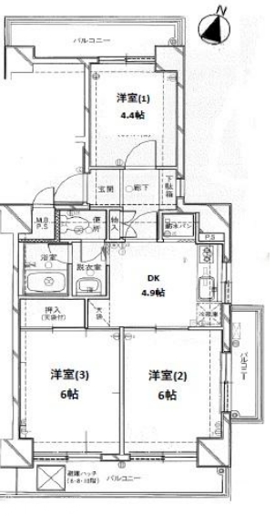 2面バルコニー