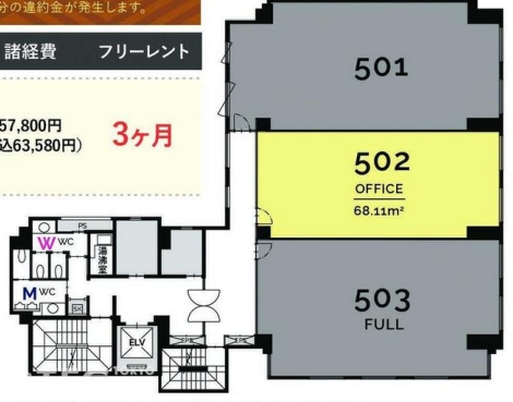 | 501+502 | 47.44坪 | 116,500円 | 127,800円 | 5,100円 | 3.1ヵ月 | 2026年2月上旬 |