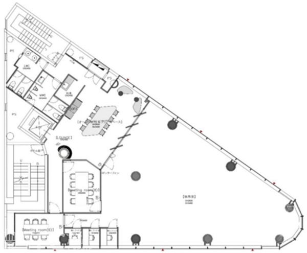 ※受付ラウンジ・オープンMTG&フリースペース・会議室2部屋(8人部屋・6人部屋)・テレカンブース3部屋