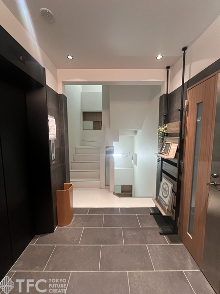 - エレベーター 男女別トイレ フォンブース スモールラウンジ シェアラウンジ 駅近 個別空調