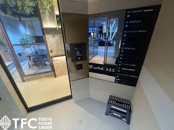 エントランス部分には会議スペースがございます。お洒落な雰囲気で好印象です。