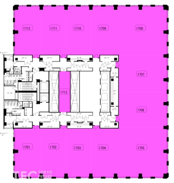 - エレベーター20基 個別空調 24時間利用可 駐車場(自走式45台・機械式165台) 天井高2,900㎜ OAフロア 男女別トイレ 給湯 24時間有人警備 新耐震